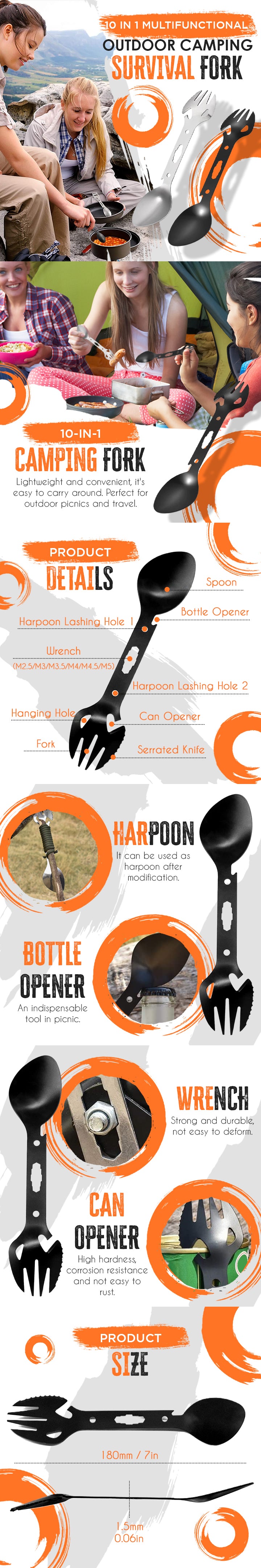 10 In 1 Multifunctional Outdoor Camping Survival Fork