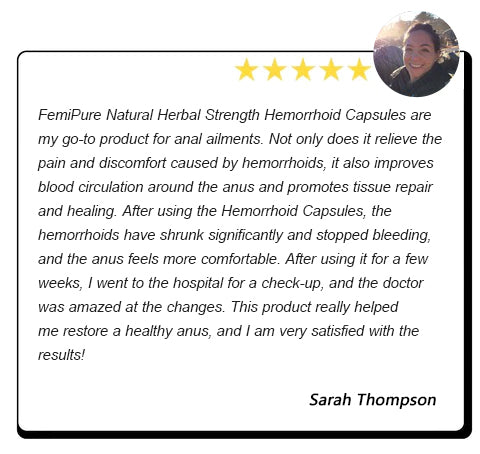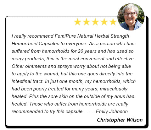 John Smith, board-certified gastroenterologist, said: "Hemorrhoids are the most common problem in anal disorders, and it is important to find a safe and effective treatment that relieves symptoms without causing further damage or irritation. That's why I recommend FemiPure™ Natural Herbal Strength Hemorrhoid Capsules to my patients. Composed of all-natural ingredients, they provide fast and effective relief from hemorrhoid symptoms, with no harsh chemicals or artificial ingredients."