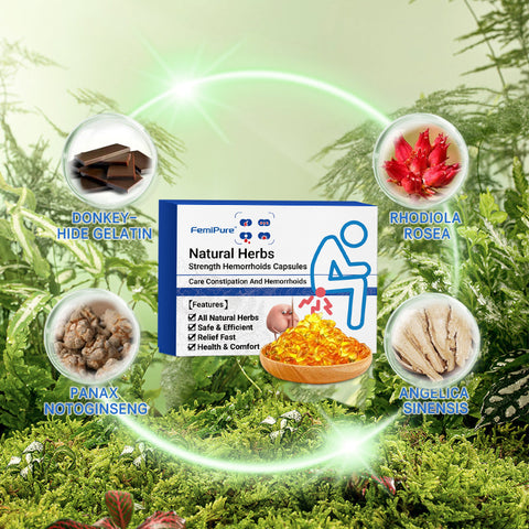 FemiPure™capsules combine traditional herbal medicine Donkey-hide gelatin and Rhodiola rosea, in which collagen is absorbed through the intestinal wall, repairs blood vessel congestion and rupture, reduces blood vessel dilation, protects intestinal mucosal tissue, and promotes hemorrhoid healing. At the same time, it can nourish yin and moisten dryness, maintain intestinal moisture, treat constipation symptoms, and prevent other anal diseases.