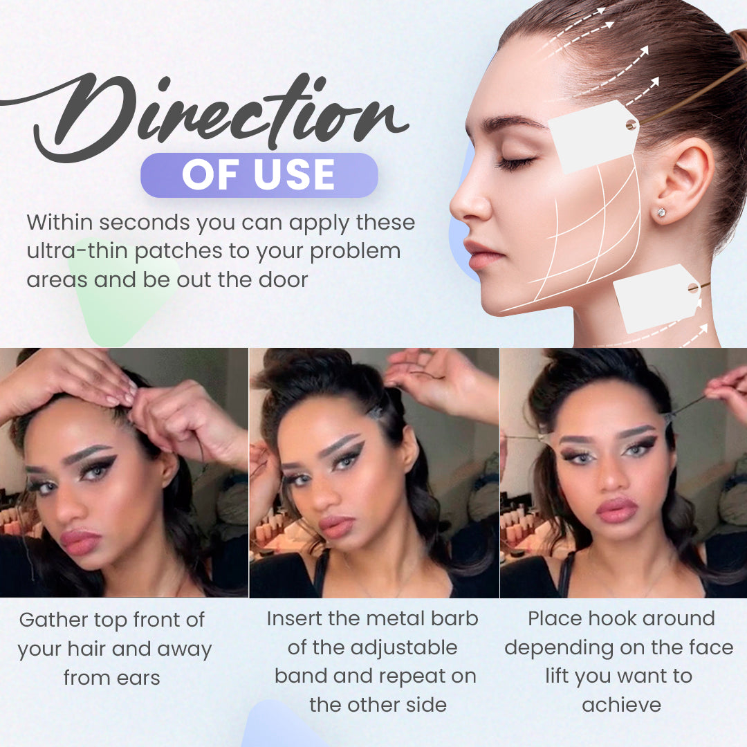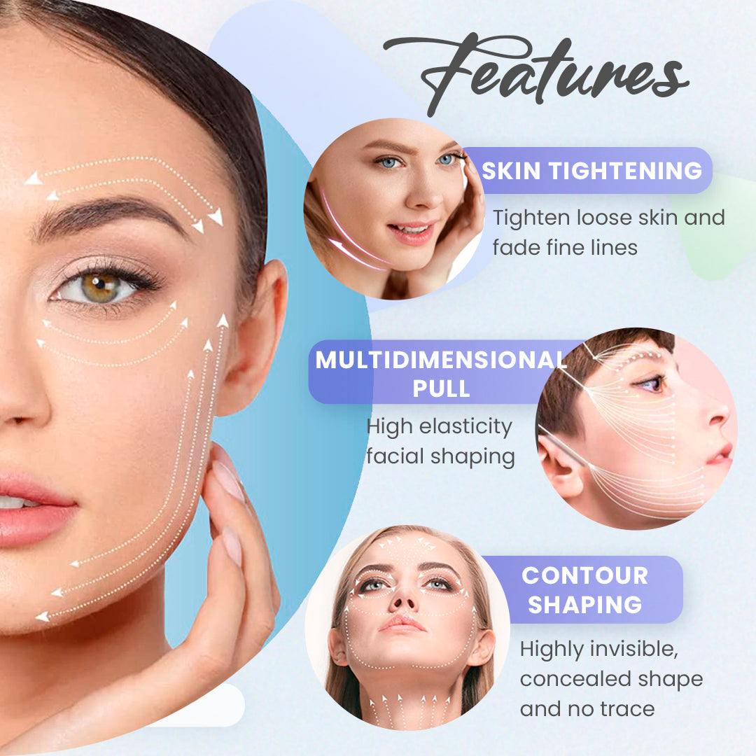 Impressively lifts the points of improvement, giving an extra pull for your jawlines, eyelids and neck areas. Perfectly unnoticeable and water proof!